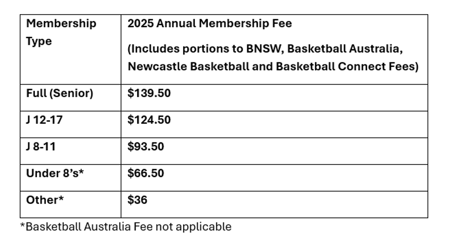Please be advised that there will be a marginal increase to the annual membership registration fee for Basketball NSW & Newcastle Basketball from 1 January, 2025.